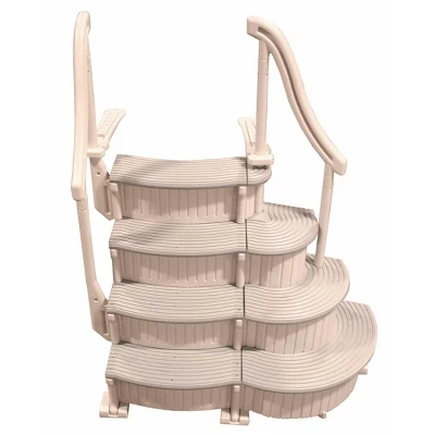 The newest above ground swimming pool stairs from Confer! These above ground swimming pool entry steps are designed to impress any onlookers, and manufactured to last for years to come. The attractive two-tone color – warm grey panels and handrails accented by grey treads – will compliment any pool, while still maintaining the strength and durability to hold up to 400 pounds. Pair this with CCXAG2 from Confer to create the perfect system!Confer has become a leader in the pool step and ladder industry. They manufacture many models of steps and ladders to help you find the perfect product for your pool or spa. With eighteen manufacturing lines and the latest equipment, we have the capacity and capability to produce parts weighing just under one pound up to 100 pounds. We regularly reinvest in new equipment so as to offer ever-improving capabilities, remarkable quality, and price competitiveness. You are sure to find the right product to make entering and exiting the pool easy and safe!Easy to install!