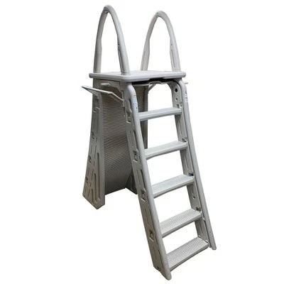 Find the gateway to relaxation and fun as you safely climb in and out of your above-ground swimming pool with this Confer Plastics 7200 Roll Guard 48-56in Adjustable A-Frame Safety Above Ground Outdoor Patio Swimming Pool Platform Ladder with Step Barrier. It has curved side rails that are designed with strength and safety in mind. This ladder is easy to assemble with minimal hardware and adjusts to fit pools 48 to 56 inches tall. The lockable roll guard barrier lock is included to prevent entry into the pool. Just fill the side rails with water to prevent this pool ladder from floating away; no sand or bricks are needed. This A-frame ladder has an extra large platform and is equipped with 18 x 5-inch Comfortread steps. The Confer ladder is made of solid plastic construction for years of use. The curved side rails are designed with strength in mind to stand up to rowdy pool play. This ladder fits pools 48 to 56 inches tall and has a maximum weight capacity of 300 pounds.So, whether you’re taking a dip, lounging, or playing with family and friends, make your pool time safer and more enjoyable. Dive in and experience the ultimate in poolside luxury and convenience. Getting in and out of your swimming pool has never been easier than with the Roll Guard A-Frame Pool Ladder from Confer.
