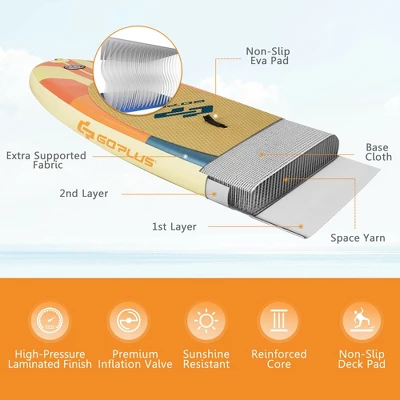 - Non-Slip Deck & Upgraded Premium Material: The non-slip pattern surface provides beginners with secure performance and good friction, and the ankle leash secure ring enhances safety while surfing. Crafted with multi-layer cloth, this inflatable paddle board ensures incredible durability and high weight capacity of 265lbs.