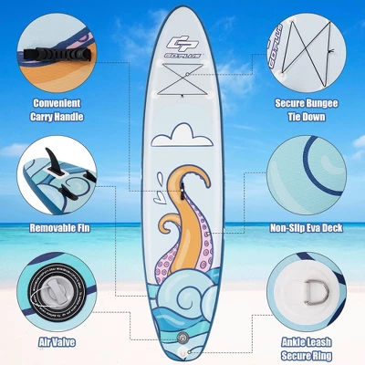 - Non-Slip Deck & Upgraded Premium Material: The non-slip pattern surface provides both beginners and seniors with secure performance and good friction, and the ankle leash secure ring enhances safety while surfing. Crafted with multi-layer cloth, this inflatable paddle board ensures incredible durability and high weight capacity of 256lbs.