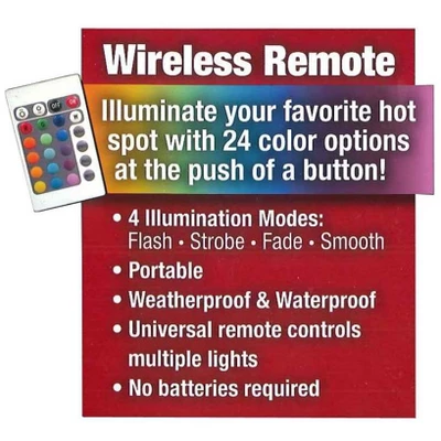 - Universal remote control included with each light, capable of controlling multiple lights