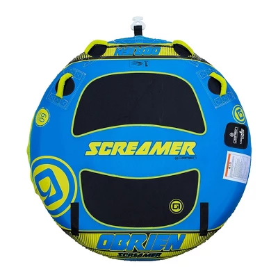 Hit the water this season in style with the O’Brien Screamer Single-Person Inflatable Towable Boating Water Sports Tube. The easy-to-attach water tube effortlessly connects to your tow rope to ensure you’ll be on the water in no time. The Screamer is the perfect tube for a rider to get whipped out and bounced around to their heart’s content. Water lovers up to 170 pounds will love this aqua riding accessory. The single-person tube features 4 EVA pads to comfortably lay or kneel while riding the waves. Featuring 4 handles with EVA knuckle guards you can easily and comfortably hold on and change positions on the tube. It’s made from a heavy-duty and durable nylon cover for maximum durability. Integrated pull-up straps provide convenience and allow for easy onboarding from the water.Give your riders the experience of a lifetime with the durable yet stylish O’Brien Screamer Single-Person Inflatable Towable Boating Water Sports Tube.