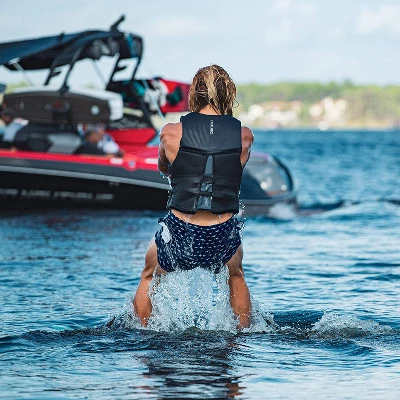There’s nothing better than a relaxing afternoon on the water. Safely participate in your favorite aquatic activities with O’Brien Watersports Men’s Flex V-Back Lightweight Life Jacket. Perfect for wakeboarding, waterskiing, tubing, swimming, and more. From kayaking to jetskiing to swimming, enjoy the open water with this traditional life jacket. Featuring a split V-back, this jacket moves with you. A large zippered closure and 2 adjustable belts secure a nice and snug fit that comfortably hugs your body. Multiple front and side hinges enhance your range of motion as you row, paddle, or swim. Use the PWC lanyard attachment ring to latch keys and other belongings to your vest.Crafted from a soft, breathable, and eco-conscious material, this buoyancy aid offers flotation for men with chest measurements of 36 to 40-inches.Lazily float along with this Coast Guard and Transport Canada-approved O’Brien Watersports Men’s Flex V-Back Lightweight Life Jacket.
