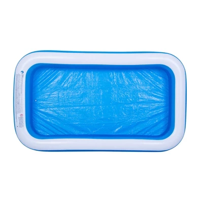 Good times are here with this spacious, fun, inflatable pool that is big enough for the whole family to enjoy. The comfortable, wide sidewalls allow for ultimate lounging to make your summer experience unforgettable. This will become a quick, backyard favorite all summer long.Product Features: Royal blue and white inflatable swimming poolThis pool has a sturdy 2-ring constructionMade with heavy-duty vinylThe pool is rectangle in shapeSuitable for ages 6 and upDimensions: 10 feet long x 6 feet wideDepth: 20 inchesMaterial(s): vinyl