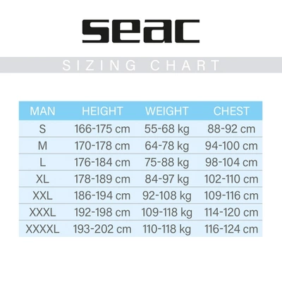 - FLAT SEAMS: the Seac Look neoprene suit is suitable for even the most delicate skin, thanks to the flat seams that prevent chafing.